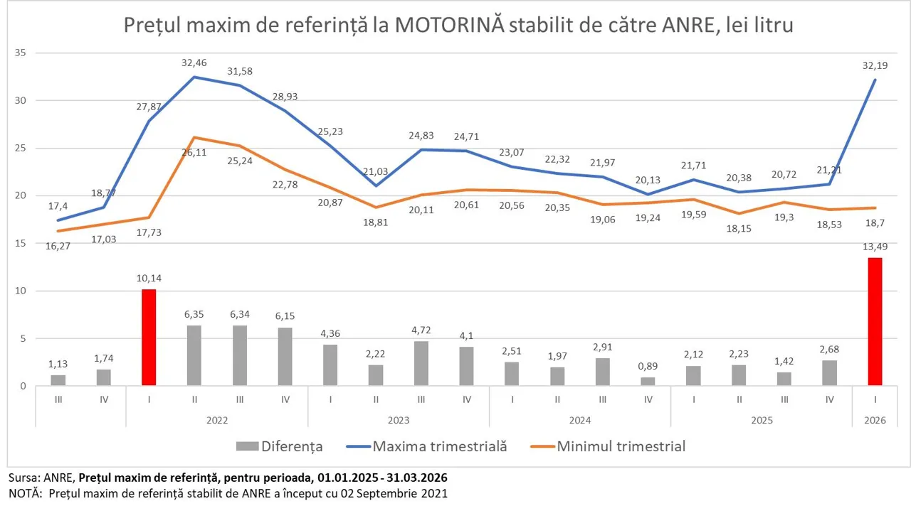 Conform datelor prezentate, în doar trei luni, prețul motorinei a crescut cu 13,49 lei pe litru, depășind precedentul antirecord din 2022 cu 3,35 lei. Chiar dacă, ajustat la inflație, prețul actual nu depășește nivelul real din 2022, expertul atrage atenția că impactul economic este mult mai puternic din cauza vitezei cu care s-au produs scumpirile.