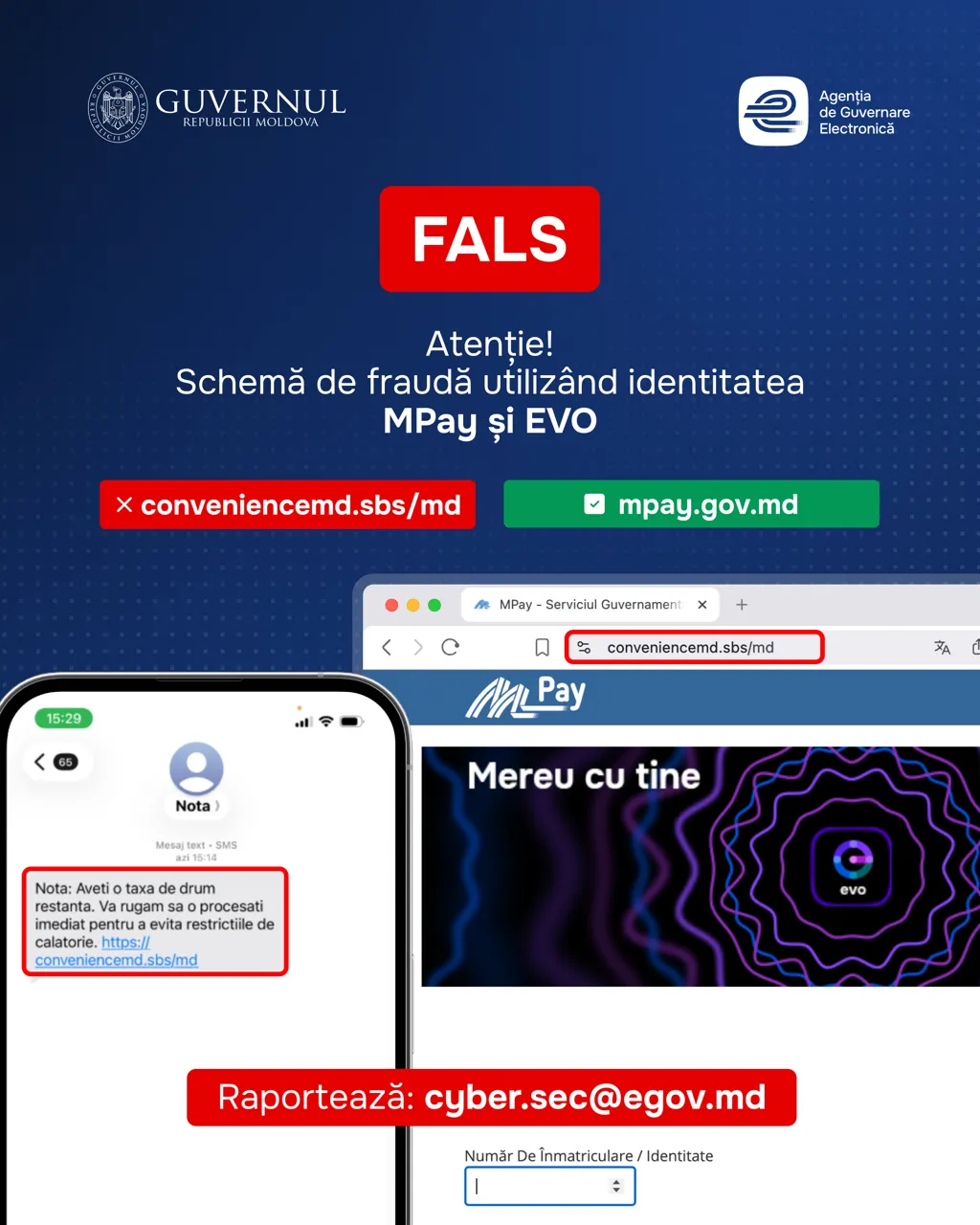 Reprezentanții autorităților subliniază că platforma oficială pentru efectuarea plăților este mpay.gov.md și că MPay și EVO nu trimit linkuri suspecte prin SMS pentru achitarea urgentă a taxelor.