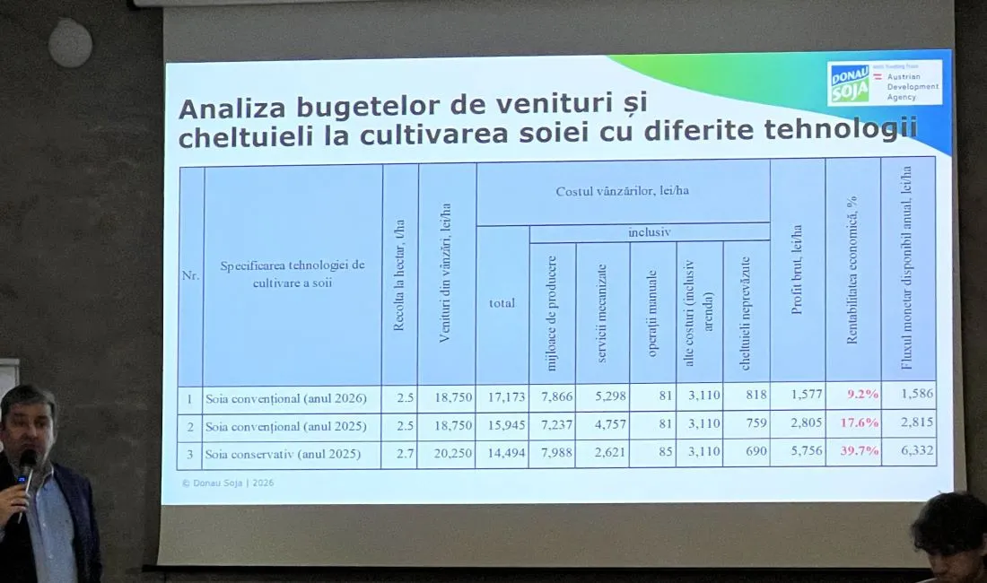 Andrei Zbancă a prezentat și o serie de calcule privind bugetele de venituri și cheltuieli la cultivarea soiei.