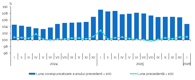 În același timp, în luna ianuarie 2026 față de ianuarie 2025, prețurile la combustibili și carburanți au scăzut cu 5,1%.