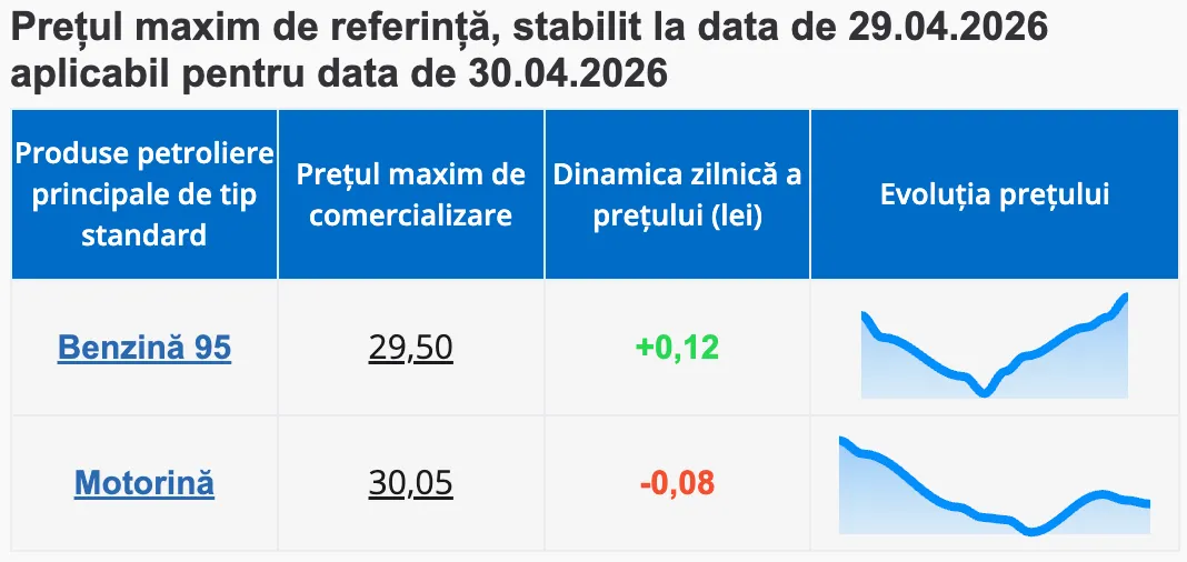 Agenția Națională pentru Reglementare în Energetică (ANRE) a publicat prețurile maxime de referință la produsele petroliere principale pentru mâine.