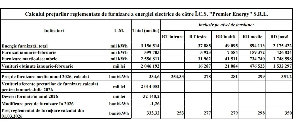 În prezent, consumatorii plătesc 4 lei/kWh în nordul Republicii Moldova și 3,59 lei/kWh în zonele deservite de Premier Energy.
