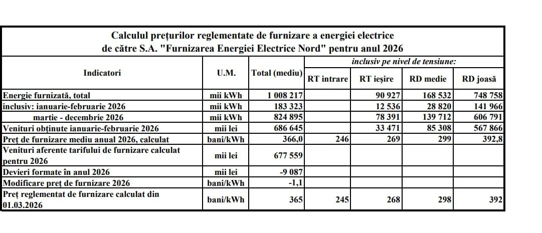 Pentru consumatorii deserviți de FEE Nord, ANRE propune un tarif de 3,92 lei/kWh. Valoarea este cu 40 de bani mai mică decât cea cerută de furnizor și cu 8 bani sub tariful aflat acum în vigoare.