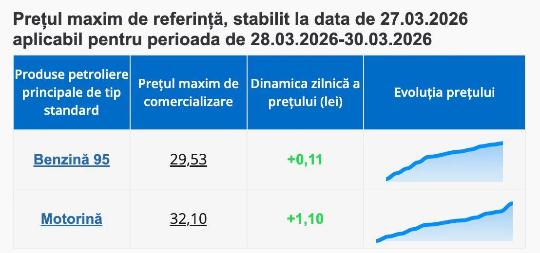 Noile prețuri au fost stabilite de ANRE pe 27 martie și sunt aplicabile pentru intervalul 28-30 martie.