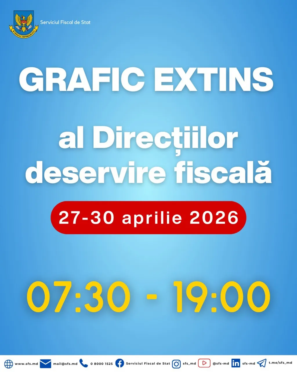 Foto: moldova1.mdPotrivit autorităților fiscale, până la această dată, Direcțiile de deservire fiscală vor activa cu program prelungit, între orele 07:30 și 19:00, pentru a facilita accesul contribuabililor, transmite Știri.md cu referire la moldova1.md.