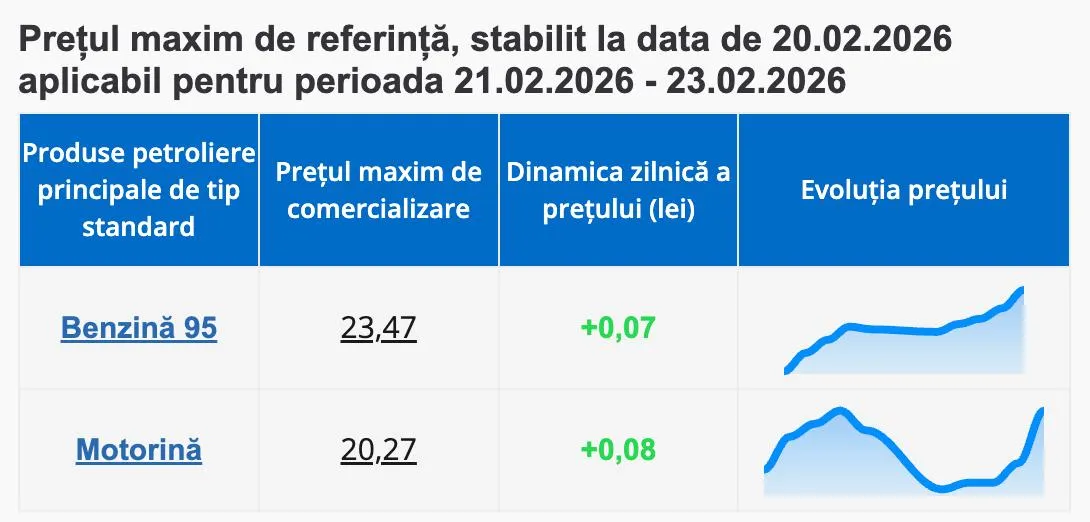 Șoferii vor plăti mai mult pentru carburanți în următoarele zile. Agenția Națională pentru Reglementare în Energetică a stabilit noile prețuri maxime de referință pentru perioada 21.02.2026 – 23.02.2026.