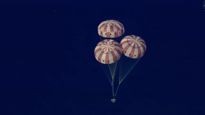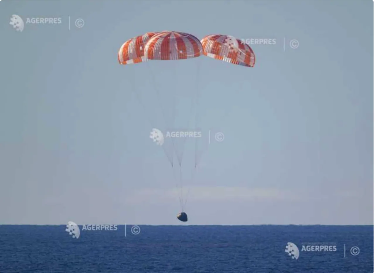 Foto: NASACapsula Orion Integrity a NASA s-a parașutat ușor în apele calme din largul coastei de sud a Californiei la scurt timp după ora 17:07, ora Pacificului (00:07 GMT, sâmbătă), încheind o misiune care, cu patru zile înainte, i-a dus pe astronauți la 405.000 de kilometri distanță de Pământ, mai adânc în spațiu decât orice altă misiune cu echipaj uman până atunci, transmite Știri.md cu referire la agerpres.ro.