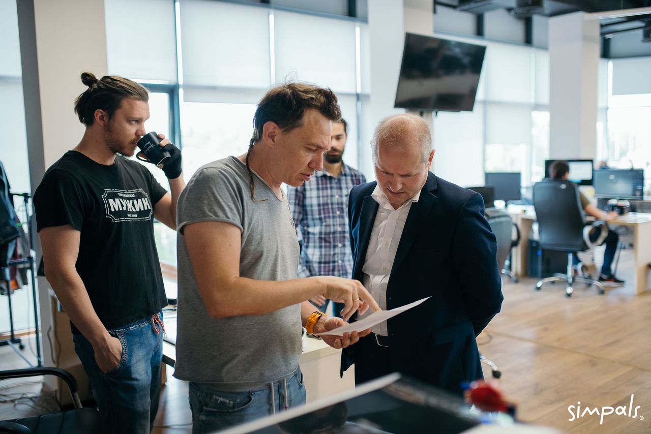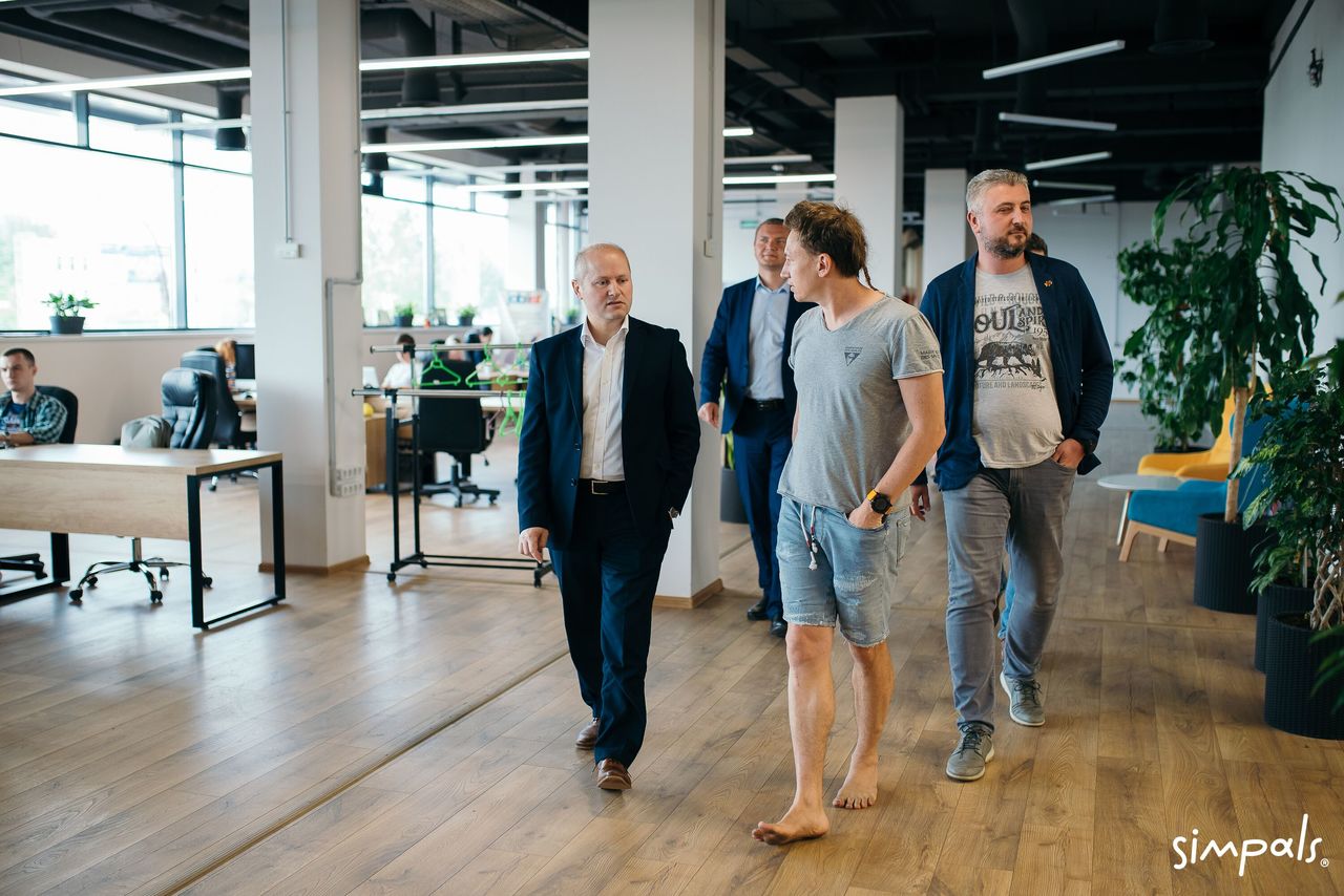 Membrii Ministerului Economiei Republicii Moldova, Vitalie Tarlev, Andrei Cușcă și directorul IT - Park, Valentina Stadnic au vizitat astăzi compania Simpals, unul dintre cei mai activi membri IT - Park.