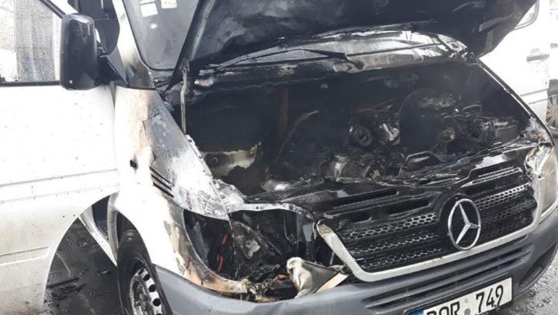 La un pas de tragedie: Microbuz, incendiat în Capitală
