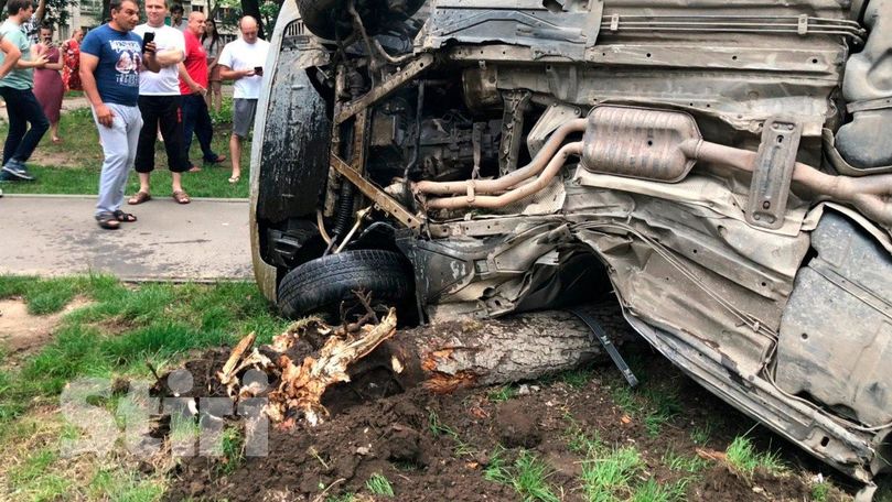 Potrivit Poliției, preliminar, șoferul automobilului BMW a pierdut controlul volanului și s-a tamponat într-un copac, după care s-a răsturnat.
