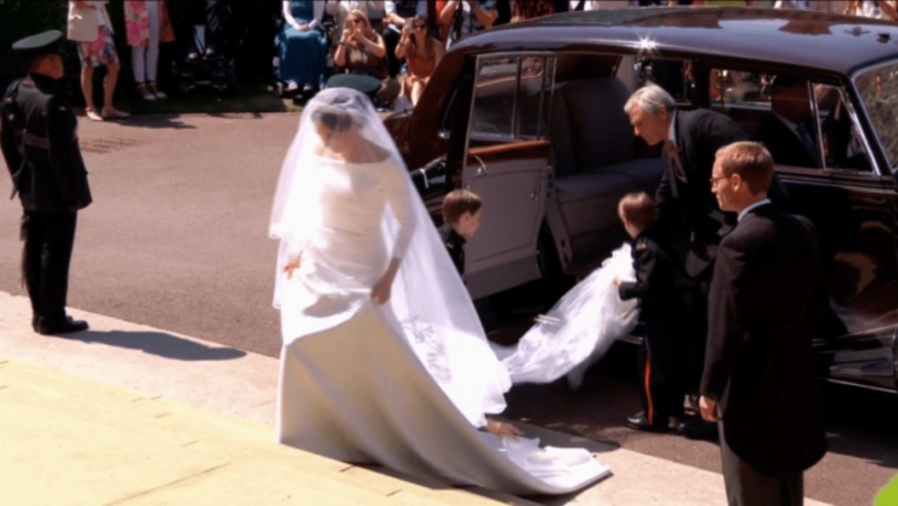 Rochia de mireasă purtată de Meghan Markle în ziua nunții este creată de britanica Clare Waight Keller, care anul trecut a devenit prima femeie director artistic al casei de modă franceze Givenchy. Rochia are o croială simplă, cu mâneci lungi şi un voal din mătase lung de cinci metri, brodat manual cu elemente din flora specifică din cele 53 de state din Commonwealth. Fiecare floare este unică şi cusută de mână pe trena lungă de cinci metri.