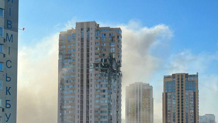 Un bloc de locuit din Kiev a fost atacat de două rachete rusești.