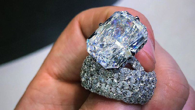 În imagini poate fi văzut inelul rapperiţei cu un diamant mare, de 17 carate, însoţit de alte două briliante cu transparenţa VVS2, de calitate superioară.