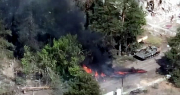 Cu toate acestea, ocupanţii au continuat atacul cu vehicule blindate. Aici paraşutiştii Lvov au aranjat o „primire călduroasă" pentru ei. Soldaţii ucraineni au transformat în cenuşă un vehicul blindat rusesc cu o lovitură precisă ajutaţi de un lansator de grenade NLAW şi apoi au început să ucidă inamicul.