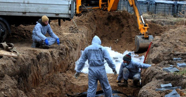 Pe lângă gropile comune, trupurile neînsuflețite se găsesc în subsoluri, beciuri, dar și în fântâni, potrivit UNIAN. Actualmente sunt circa 300 de grupuri care investighează moartea civililor, iar numărul exact al victimelor atrocităților se stabilește încă.