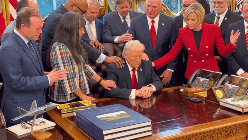 Foto: Captură ecranMomentul a avut loc în Biroul Oval, unde lideri religioși veniți din mai multe state americane s-au strâns în jurul președintelui, și-au pus mâinile pe umerii lui Trump și au rostit rugăciuni pentru ghidarea acestuia. Aceștia au cerut ca Dumnezeu să îi ofere lui Donald Trump „înțelepciune” pentru a lua cele mai bune decizii, solicitând totodată ca inima acestuia să fie umplută cu „putere și claritate” în aceste „vremuri pline de provocări”, transmite Știri.md cu referire la adevarul.ro.