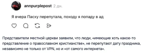 Reprezentanții bisericii locale au declarat că oamenii „care au măcar o idee despre creștinismul ortodox” nu vor confunda data sărbătorii, indiferent nu doar de VPN, ci și „de internetul în sine”.