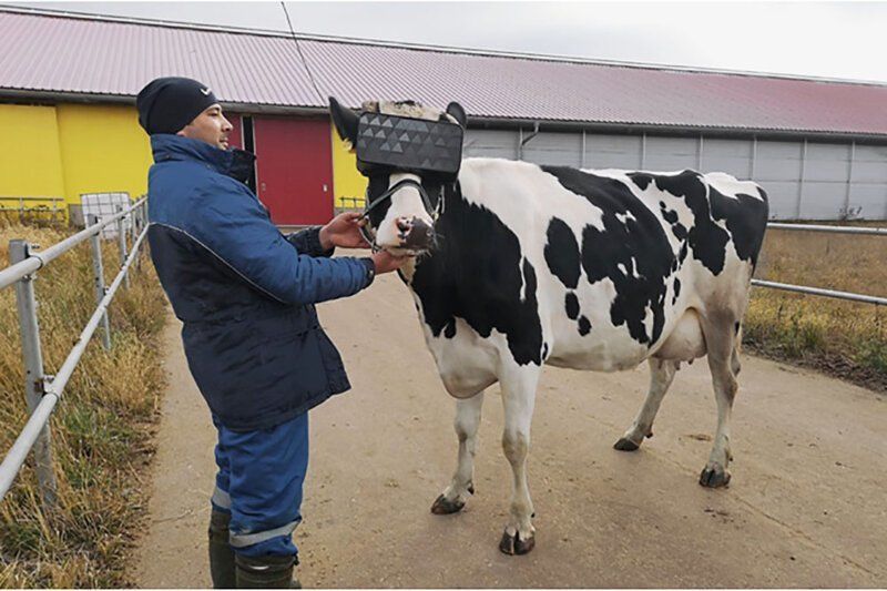 La o fermă din suburbiile Moscovei, li s-au pus vacilor ochelari de realitate virtuală, pentru a-și îmbunătăți starea de spirit.