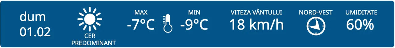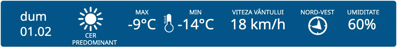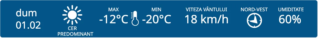 Prima zi din februarie ne aduce cer predominant însorit, potrivit prognozei meteorologilor. Minimele termice vor oscila între -20 și -9 grade Celsius.