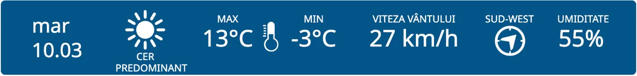 La nord, termometrele vor arăta temperaturi cuprinse între -3° și +13°C.