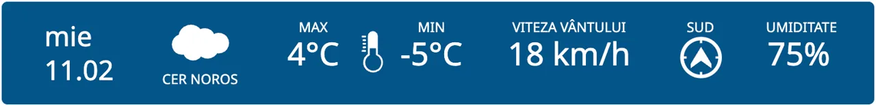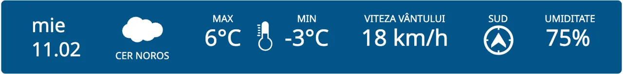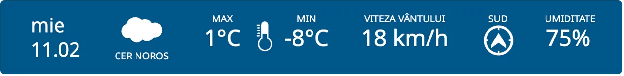 Meteorologii prognozează cer noros în toată țara. Minimele termice vor fi cuprinse între -8 și -3 grade Celsius.