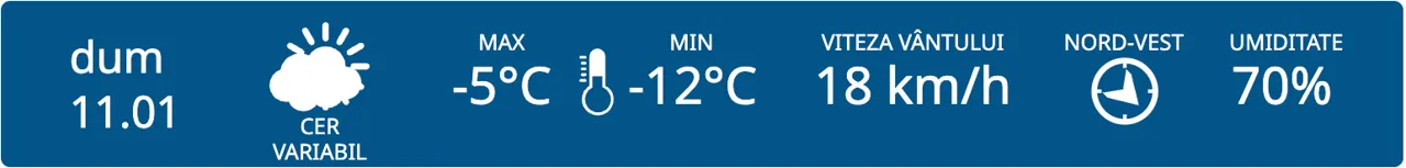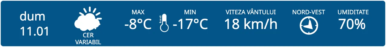 Meteorologii prognozează cer variabil în toată țara. Minimele termice vor fi cuprinse între -17 și -8 grade Celsius.