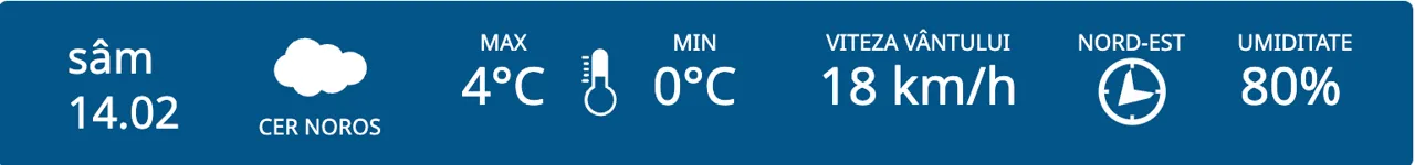Meteo 14 februarie 2026: Cer noros și ploi slabe. Ce temperaturi sunt prognozate