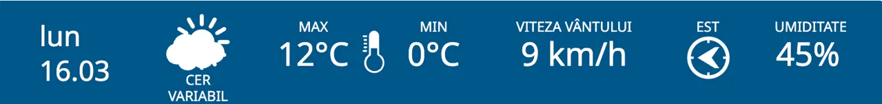 Meteorologii prognozează pentru luni, 16 martie, cer variabil pe întreg teritoriul R. Moldova. Maximele termice vor fi cuprinse între 12 și 15 grade Celsius.