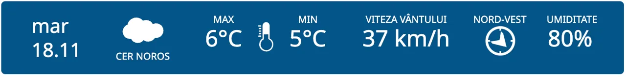 La nord, termometrele vor arăta temperaturi cuprinse între +5° și +6°C.