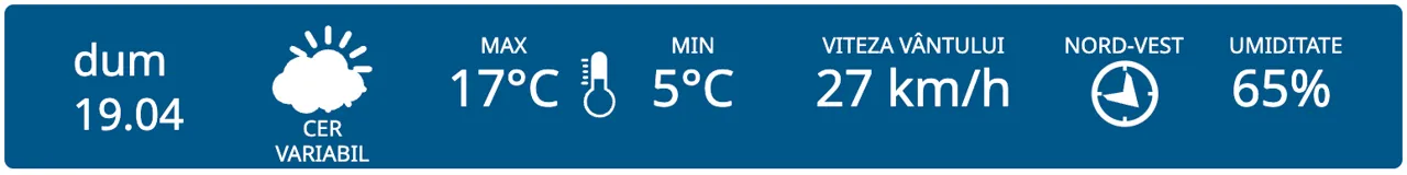 Meteorologii prognozează cer variabil în toată țara. Maximele termice vor varia între +14 și +19 grade, iar cele minime între +2 și +7 grade Celsius.