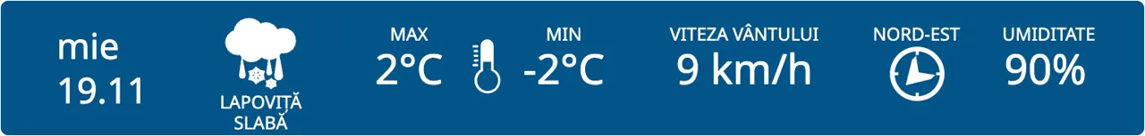 La nord, termometrele vor arăta temperaturi cuprinse între -2° și +2°C.