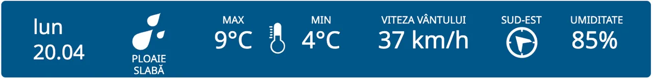 Meteo 20 aprilie 2026: Ploi slabe în Moldova și maxime de până la +20°C