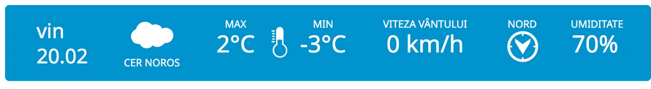 Temperaturile minime nocturne vor oscila între −𝟔 și −𝟏°𝐂, iar cele maxime diurne se vor situa între −𝟐 și +𝟑°𝐂.