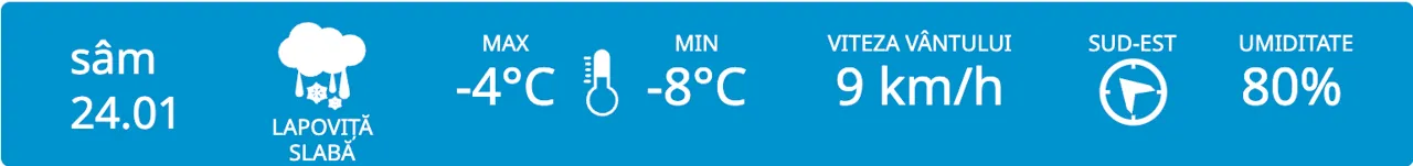 În centrul și nordul țării se așteaptă lapoviță slabă, iar în sudul țării va fi cer noros, anunță meteorologii. Minimele termice vor fi cuprinse între -8 și -3 grade Celsius.