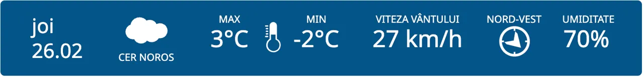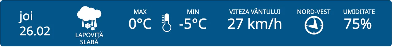 Meteo 26 februarie 2026: Lapoviță slabă la nord și cer noros în restul țării