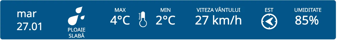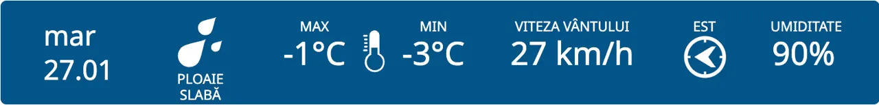 Pe întreg teritoriul țării se așteaptă ploi slabe, potrivit prognozei meteorologilor. Temperaturile maxime vor oscila între -1 și +4 grade Celsius.