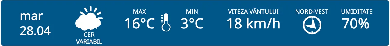 Meteorologii prognozează pentru marți cer variabil în toată Moldova. Maximele termice vor varia între +13 și +18 grade, iar cele minime între 0 și +5 grade Celsius.