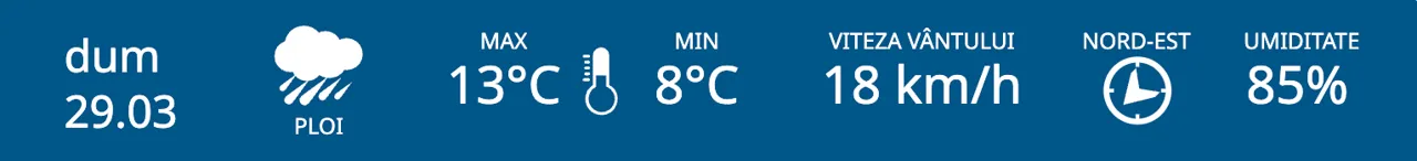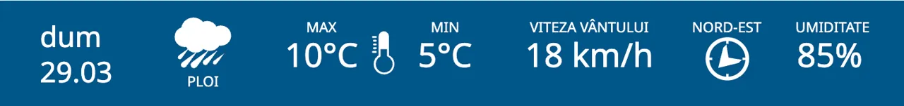 Meteorologii prognozează pentru duminică, 29 martie, ploi pe întreg teritoriul R. Moldova. Maximele termice vor fi cuprinse între 15 și 18 grade Celsius.