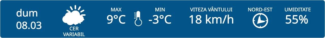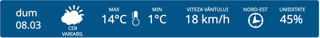 De Ziua Internațională a Femeilor vom avea parte de cer variabil în toată țara, iar maximele termice vor fi cuprinse între +9 și +14 grade Celsius.