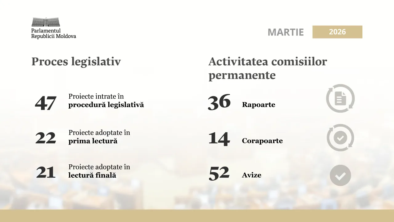 Bilanțul activității legislative în luna martie 2026: Parlamentul a adoptat 21 de acte normative