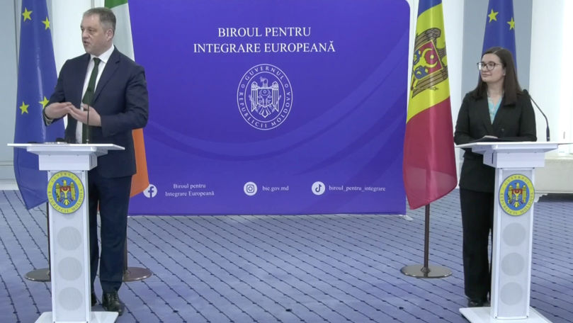 Irlanda își reafirmă sprijinul pentru aderarea Moldovei la Uniunea Europeană și este pregătită să susțină acest proces, inclusiv în perioada viitoarei președinții a Consiliului UE. Declarația a fost făcută de ministrul irlandez pentru afaceri europene și apărare, Thomas Byrne, în cadrul unei conferințe de presă, alături de viceprim-ministra pentru integrare europeană, Cristina Gherasimov.
