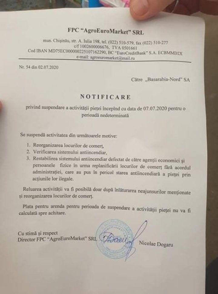 Vadim Brînzaniuc a mai precizat că terenul pe care este amplasată piaţa este proprietate privată.