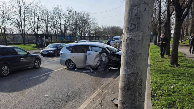 Un automobil s-a izbit violent într-un pilon electric. Totul s-a întâmplat în această dimineață, 4 aprilie, pe strada Albișoara din Chișinău.