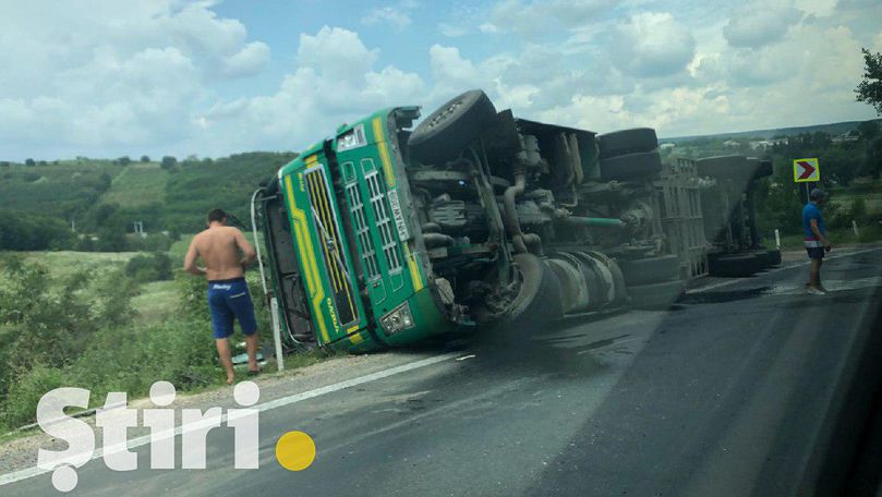 Accident pe traseul Chișinău-Hâncești: Un camion plin cu grâu s-a răsturnat