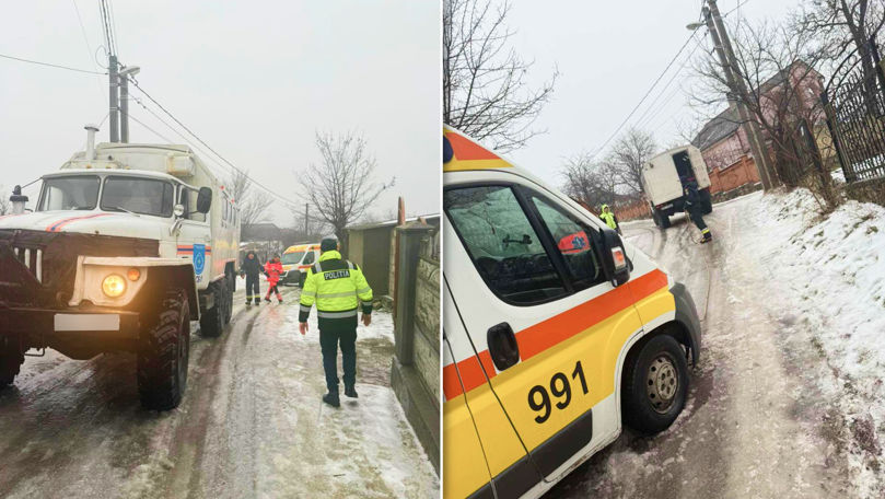 Mai multe ambulanțe au rămas blocate pe drumurile din țară, din cauza poleiului. Salvatorii IGSU au intervenit pentru deblocarea autospecialelor și pentru a asigura continuarea misiunilor medicale.