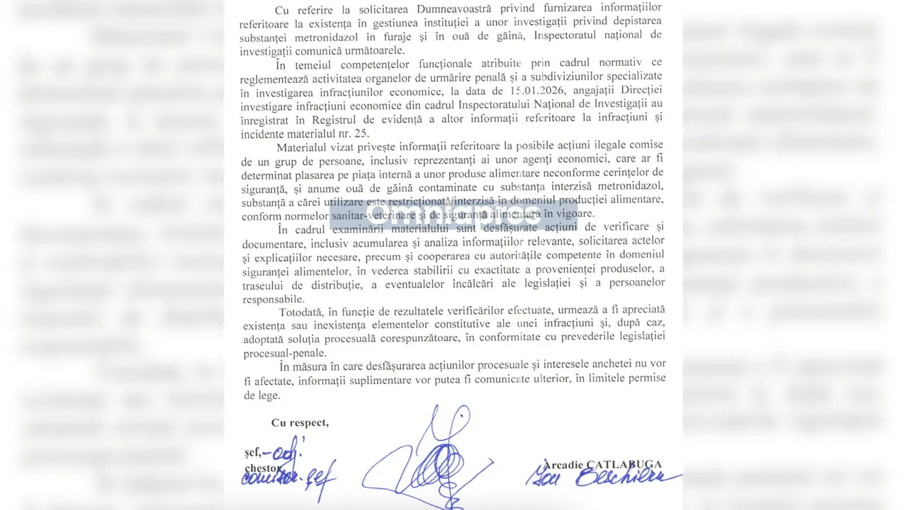 La peste o lună de la apariția scandalului legat de ouăle contaminate, Inspectoratul Național de Investigații (INI) a confirmat pentru Omniapres că desfășoară verificări privind posibila comercializare pe piața internă a ouălor și produselor avicole care ar conține metronidazol, substanță interzisă în industria alimentară.