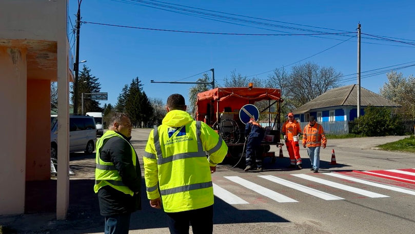 Vizita a continuat la kilometrul 51 al aceluiași traseu, în apropierea localității Halahora de Sus, unde echipele interveneau pentru aplicarea marcajului rutier.