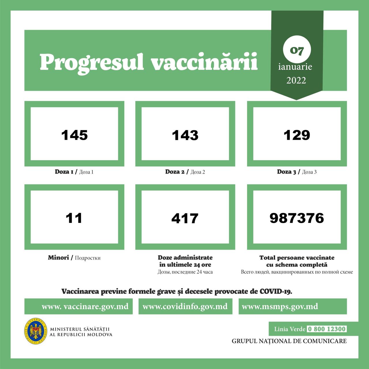 Din numărul total de persoane vaccinate, 987.376 s-au imunizat cu schema completă.