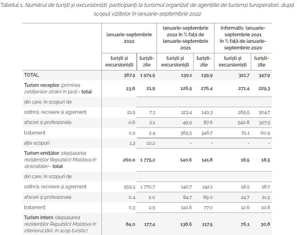 Câți turiști au vizitat țara noastră în primele nouă luni ale anului