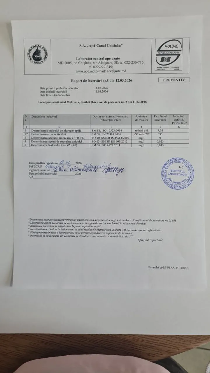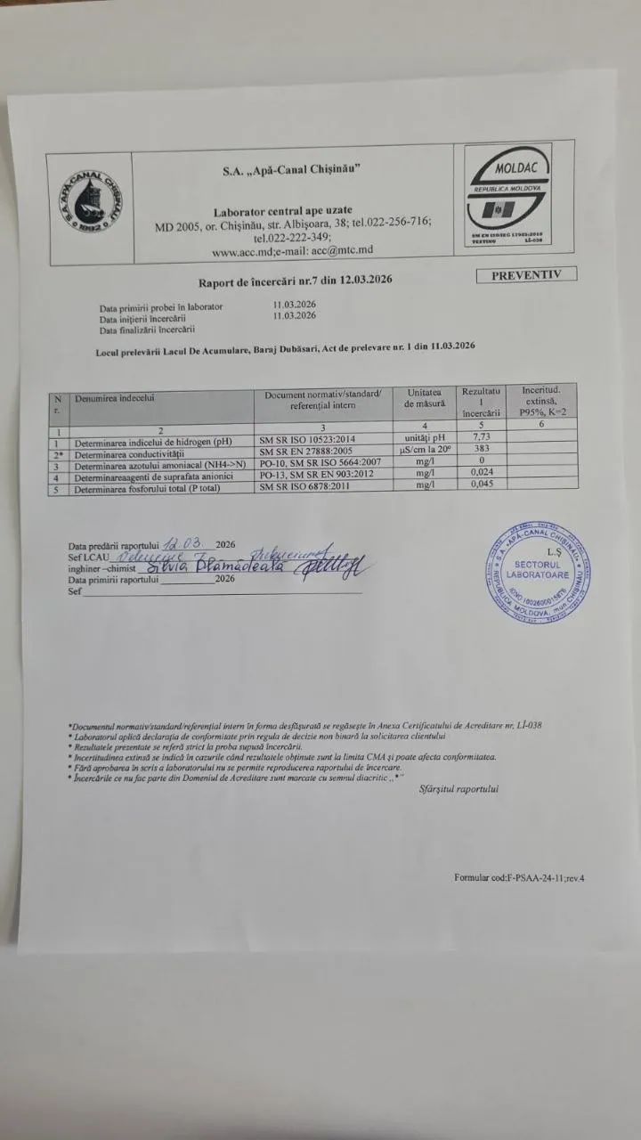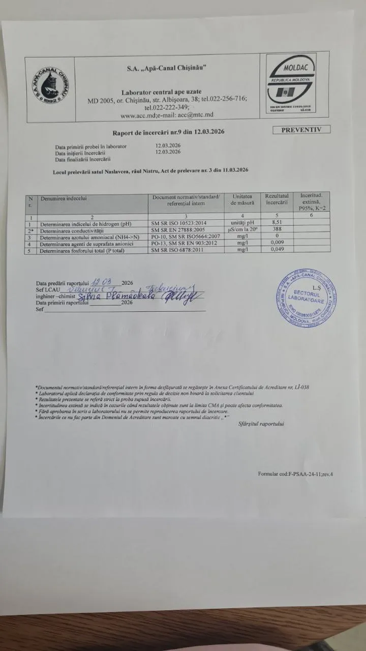 Primarul Capitalei, Ion Ceban, a prezentat rezultatele analizelor pentru alți parametri fizico-chimici ai apei, prelevate din trei puncte diferite ale râului Nistru: Hidrocentrala Dubăsari, Molovata și Naslavcea.